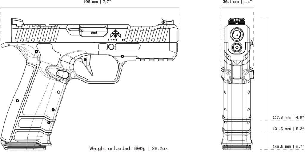 Featuring Archon’s AF-Speedlock technology, the Type B delivers exceptional recoil management, enabling fast and consistent follow-up shots. The low bore axis and ergonomic geometry support natural aiming, while the modular grip system provides secure handling and straightforward customization for individual user requirements. Manufactured from highly durable materials, the Type B ensures reliability and long-term dependability in demanding environments. It is suitable for professional duty use, personal defense, and competitive shooting.